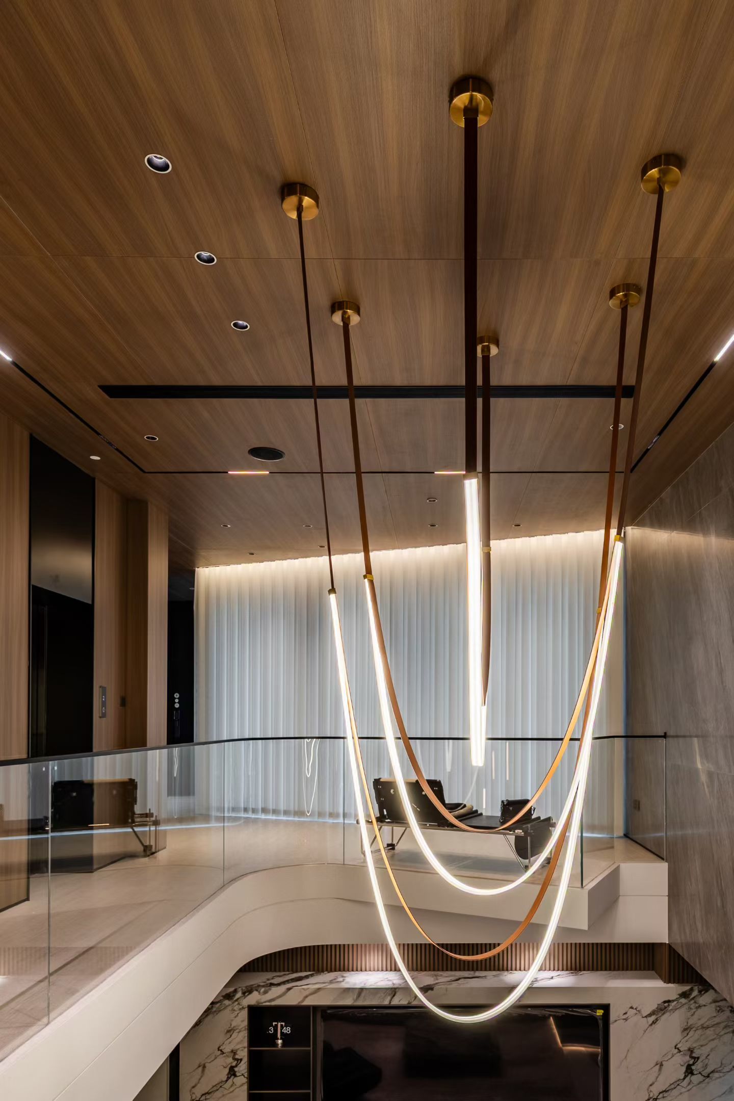 Engineered with stainless-steel support cables, sealed marble beads, tempered glass, and multi-layer electroplated gold finishes for long-term reliability.